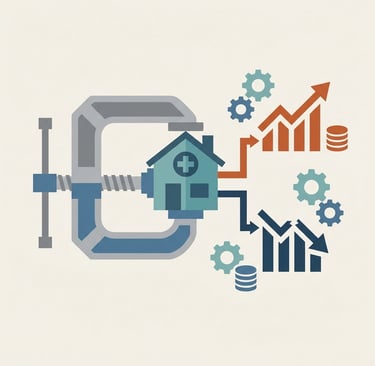 The Valuation Gap: Agency A maintains 18% EBITDA margins and commands a 6.5x multiple, resulting in a $14 million sale price. Agency B, constrained by per-visit restrictions, struggles to achieve 12% EBITDA margins and receives a 4.8x multiple, translating to just $7.2 million in proceeds. Same revenue, $6.8 million difference in owner payout.