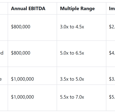 Multiple: The number applied to EBITDA to determine enterprise value. A 5x multiple on $1M EBITDA equals a $5M valuation.