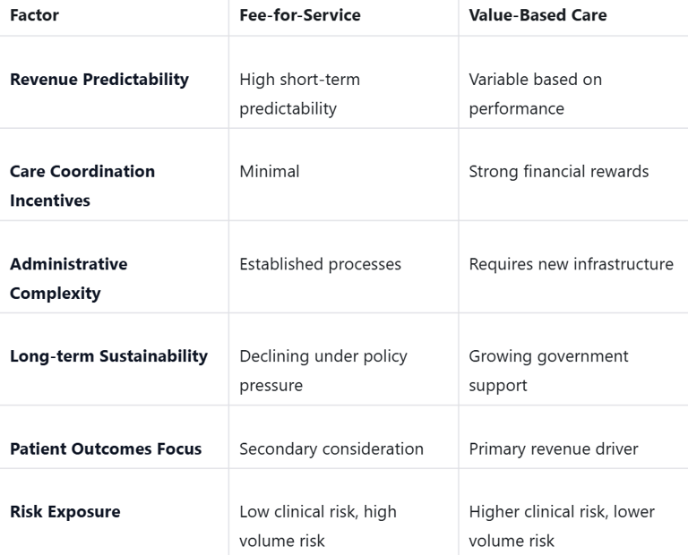The optimal strategy for 2026 combines both models strategically. Continue optimizing your FFS operations while gradually building value-based capabilities. This allows you to maintain current revenue while positioning for future opportunities.